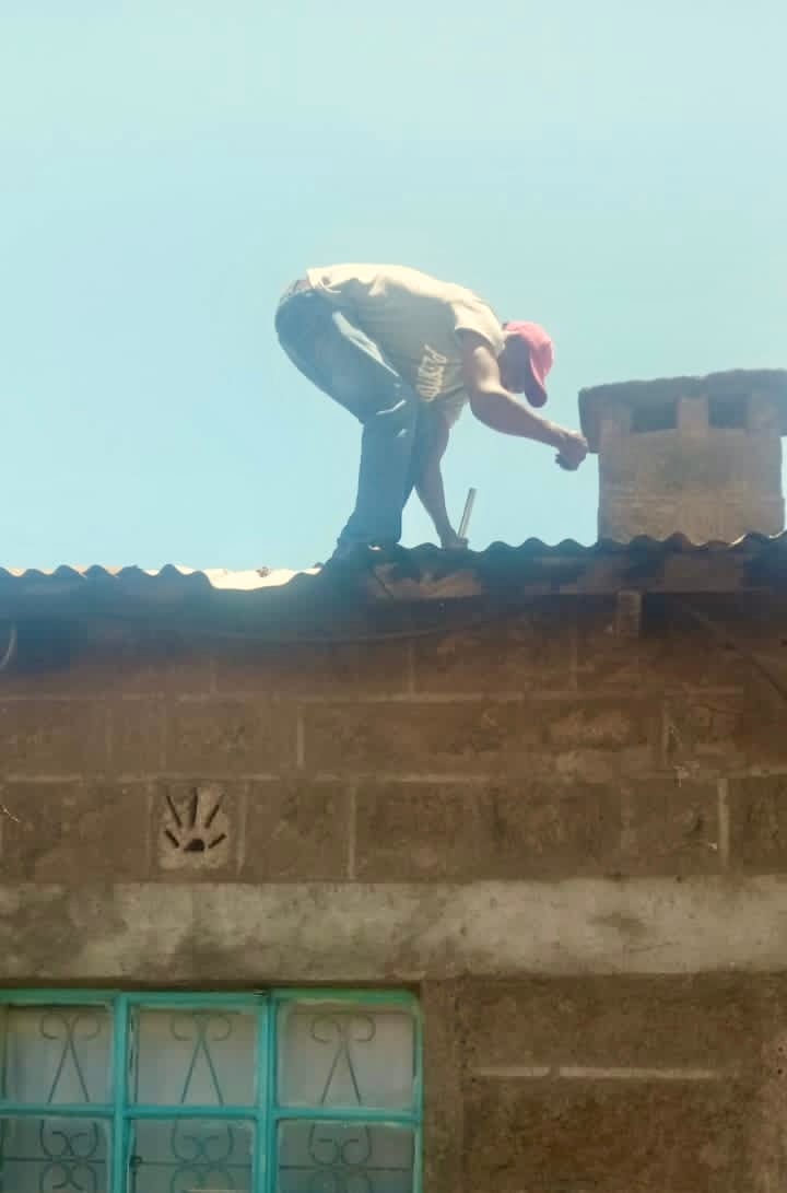 Working day and night to keep the inside of the house dry... The roof is finally repaired!