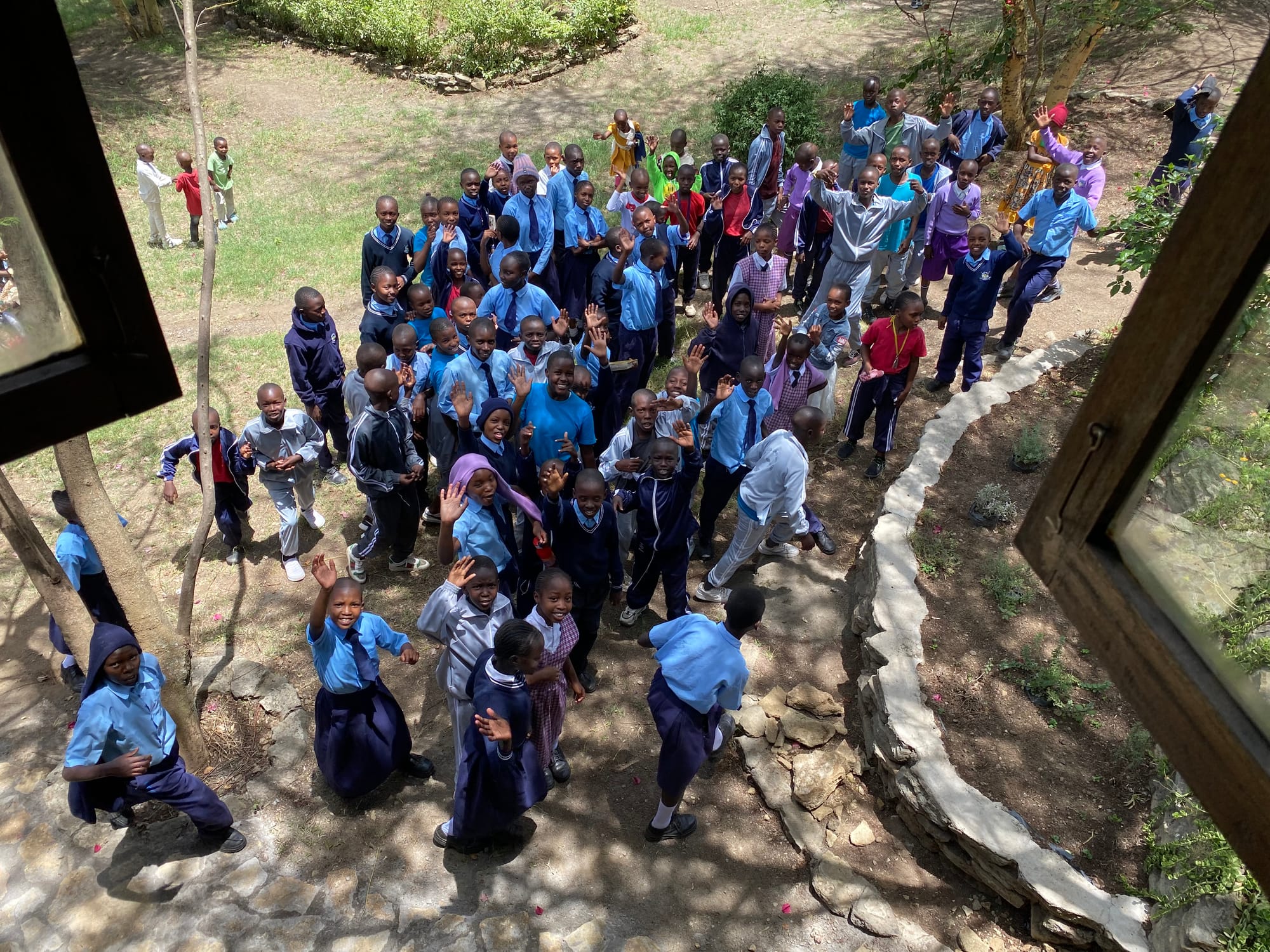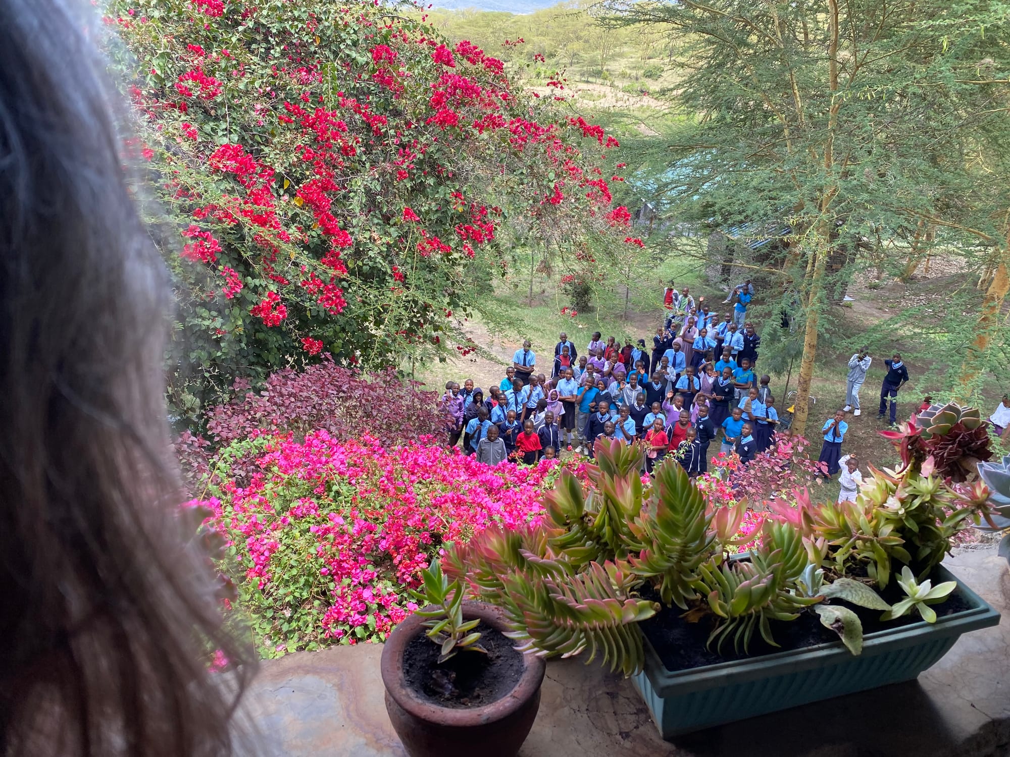 My dear wife, Haviylah, was resting that morning and couldn’t come to the pavilion. When the kids heard that, they asked if she would come to the veranda and wave to them before they left. They then asked me to come down and take a few more pictures. I was already in my 'take a nap' clothes but came down anyway.