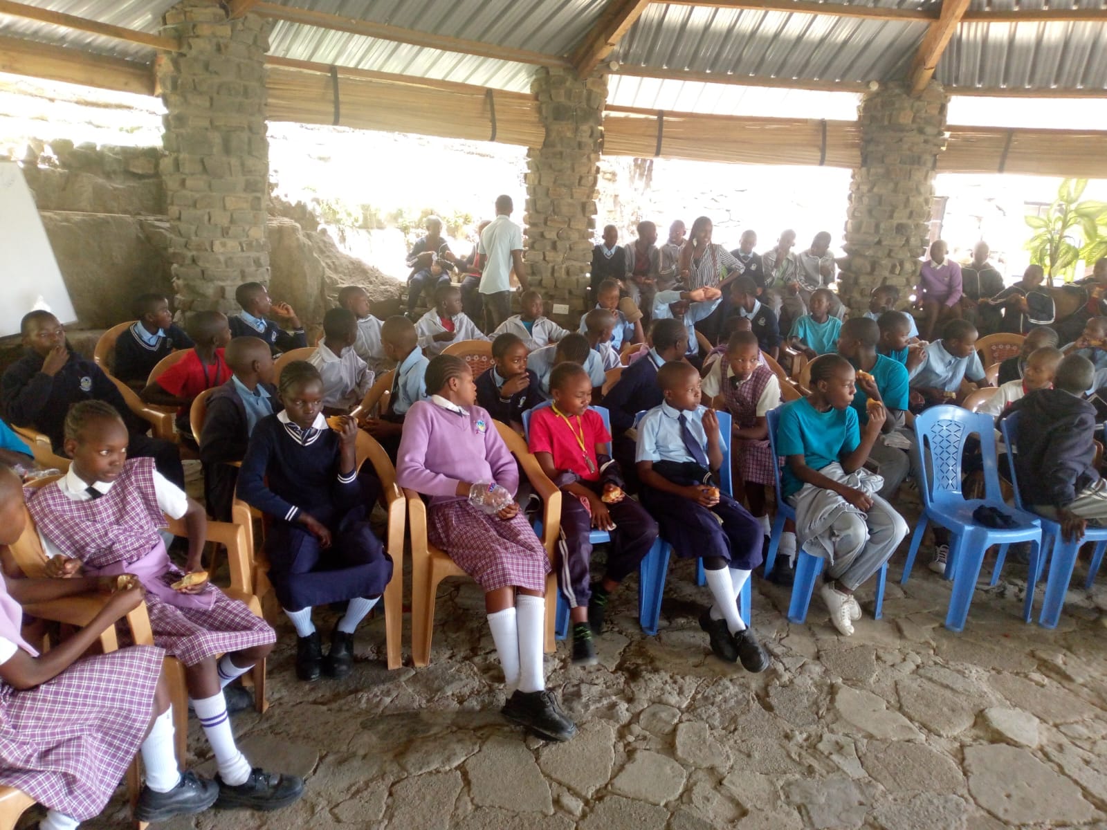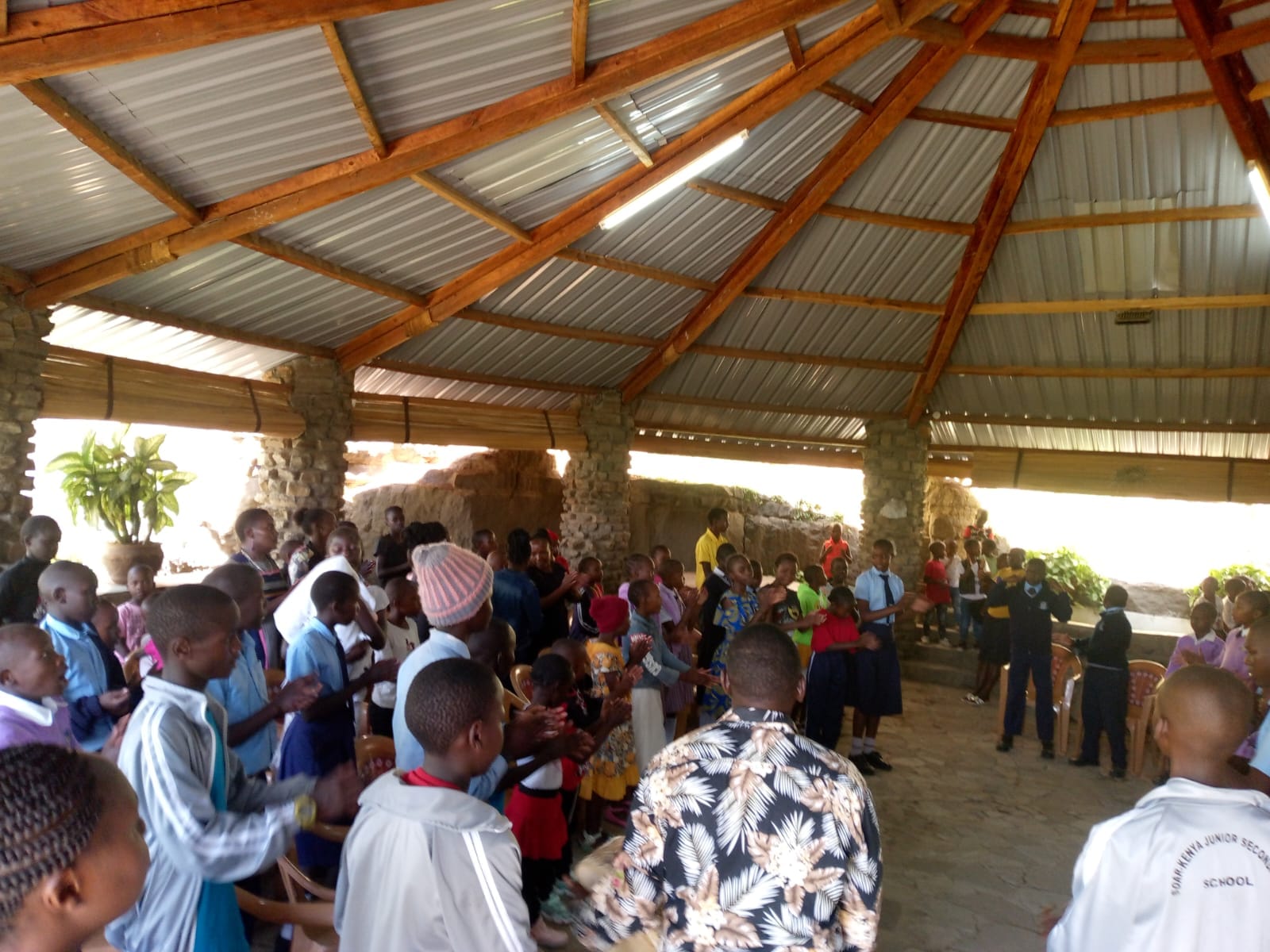 After the incredible ‘HOLD FAST’ women’s gathering last Saturday, we were blessed with over a hundred children visiting us the next day. On typical Sunday mornings, we teach the kids living at Soar Kenya’s Boarding School. Jeroge and some of our youth travel about two miles up the hill to the school, where the children are eager to hear about the Kingdom of God.